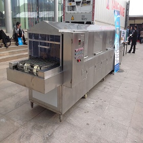 洗筐機(jī)的種類(lèi)比較多,按其開(kāi)門(mén)裝置區(qū)分,可分為前開(kāi)式和頂開(kāi)式兩種。前開(kāi)式的門(mén)打開(kāi)后,可以像書(shū)桌一樣拉出每個(gè)格架,放取餐具非常方便,且由于其頂部不開(kāi),還給用戶(hù)提供更多的使用空間。頂開(kāi)式與之相比,則放取餐具不太方便,頂部也無(wú)法充分利用。按洗滌方式分分為葉輪式、噴射式、淋洗式和超聲波式等4種。